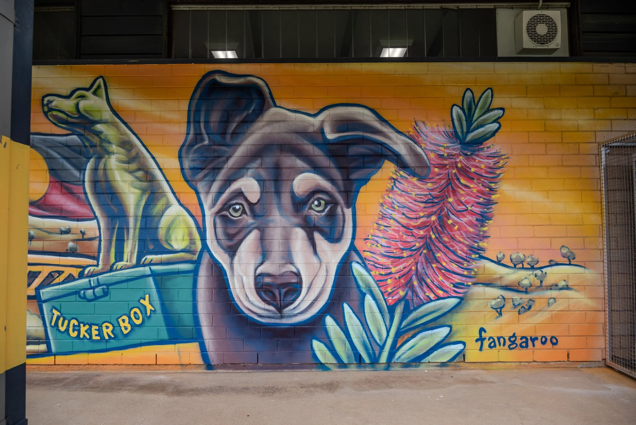The outgoing year 6 class commissioned me to design and paint a 15m mural artwork as a gift to the school. Visible from the main road in features some iconic Aussie animals and represents local cultural identity and landmarks.